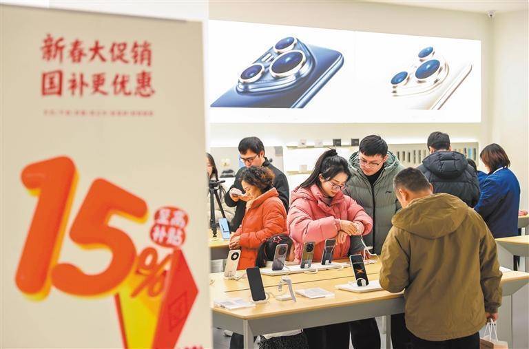 1月5日,消费者在浙江省湖州市德清县一卖场选购电子产品。随着首批625亿元国补资金下达,新一轮消费品以旧换新政策全面落地。姚海翔摄(中经视觉)
