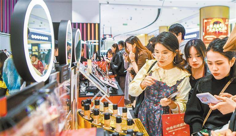 1月2日,游客在cdf海口日月广场免税店选购免税商品。自海南自贸港启动全岛封关以来,离岛免税购物热度持续走高。苏弼坤摄(中经视觉)